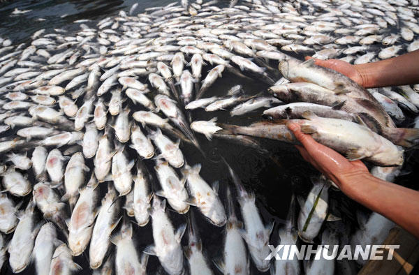 幾天前,廣西永?h廣福鄉廣福村附近的河水突然變黑,導致近日村里11戶農民在河中網箱內養的魚接連出現大面積死亡,損失慘重。村民們反映河水變黑是上游幾家工廠偷排污水所致。目前,當地環保、漁政等部門已介入調查。新華社記者:陳瑞華