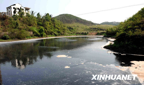 3月29日,上游一家淀粉廠的污水池仍然散發著臭味,污水由排水口直通河中。新華社記者 陳瑞華 攝