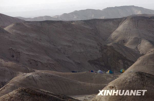 中國石油東方物探公司塔里木經理部的工人住宿的帳篷(3月29日攝)。新華社記者:邢廣利攝