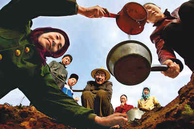 2008年2月11日,甘肅省渭源縣邱家莊。從山眼泉里舀水的村民。