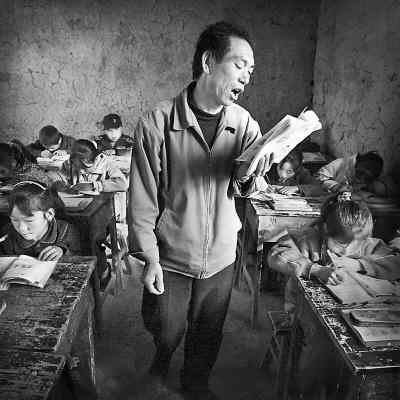 甘肅省毛羽山小學民辦教師王實明在給學生上課。毛羽山小學共有3位老師、48個學生。