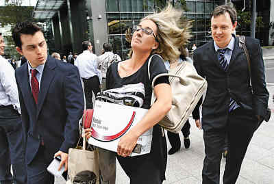 2008年9月15日,在英國倫敦,一名員工搬著個人物品從雷曼兄弟公司走出。