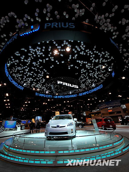 這是4月8日在美國紐約舉行的紐約國際車展媒體開放日上展示的豐田普銳斯(Prius)混合動力車。新華社記者申宏攝 |