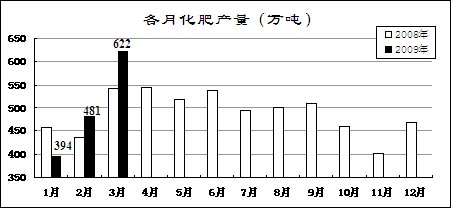 重點監測的化工產品中,“兩堿”價格繼續下降,多數化肥產品價格持續回升。3月份,燒堿(片堿)平均價格為2850元/噸,比去年12月份下降250元/噸,同比下降7.8%;純堿1150元/噸,比去年12月份下降130元/噸,同比下降44.7%。尿素1920元/噸,比去年12月份上漲200元/噸,同比下降1%;國產磷酸二胺2950元/噸,比去年12月份下降50元/噸,同比下降28%;進口氯化鉀4300元/噸,比去年12月份下降100元/噸,同比上漲45.8%。電石3080元/噸,比去年12月份上漲70元/噸,同比下降4.6%。