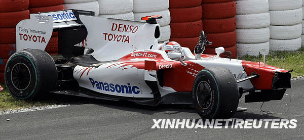5月10日,豐田車隊車手特魯利駕駛的賽車發生碰撞后停下。新華社/路透