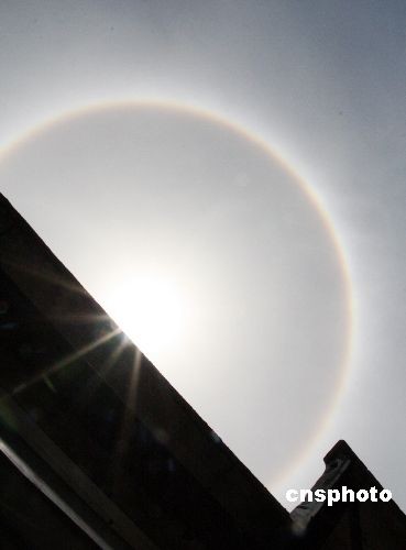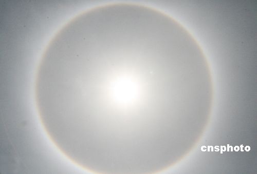 5月17日中午時分,河南省漯河市上空出現日暈景觀。中新社發 李慧宇 攝