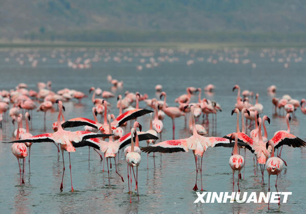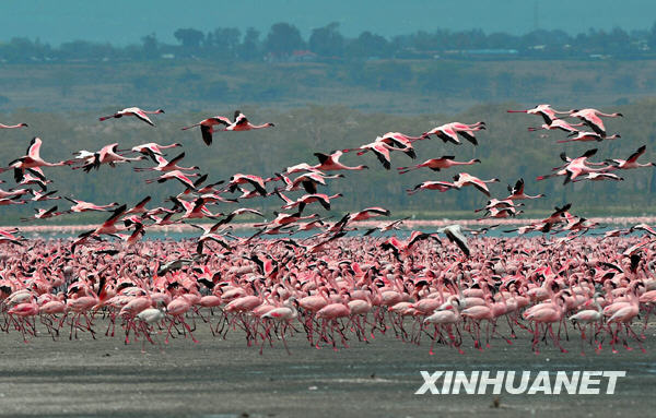 近來受益于環境保護、水量增長等因素,享有“觀鳥天堂”美譽的肯尼亞納庫魯湖火烈鳥數量大增。棲息在湖岸淺水區域超過80萬只粉紅色的火烈鳥,使納庫魯湖重現粉色湖岸奇觀。納庫魯湖是肯尼亞最大的火烈鳥棲息地,數量曾多達上百萬只,約占世界火烈鳥總數的三分之一。近些年來由于淡水減少、湖水鹽堿度過高等原因,納庫魯湖火烈鳥數量急劇下降,2008年期間最少總量一度不足5萬只。
