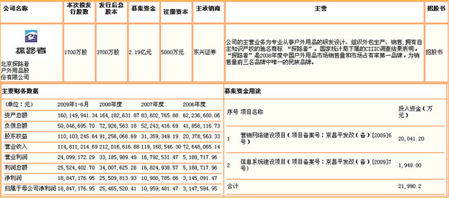 公司憑借遍布全國130多個大中城市、超過400家零售網點組成的營銷網絡,以及創業十年來積累的豐富的研發設計經驗、營銷網絡拓展能力和綜合管理經驗,源源不斷地將“探路者”戶外用品銷往全國各地。公司銷售收入快速增長,年均復合增長率超過50%。2007年初,經過層層選拔評審,探路者在眾多競爭者中脫穎而出,成為中國戶外用品行業唯一的“北京2008年奧林匹克運動會特許生產商”。2009年,公司被北京市國家稅務局和地方稅務局認定為納稅信用A級企業。
