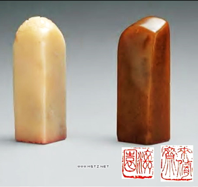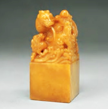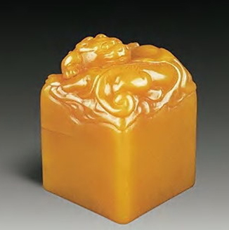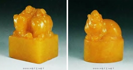 尺寸:高5cm、4.5cm 成交價:RMB1,760,000 拍賣公司:北京翰海 日期:1999-07-05 說明: 此二件田黃章,質地勻靜純正,作工卓思精美,為傳世罕見佳制。