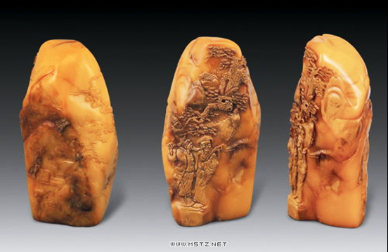 說明:田黃石為壽山石中的極品,價格昂貴,皆以錢﹑兩為計算單位。自清以來,極負盛名,爭相尋求視為瑰寶。所謂