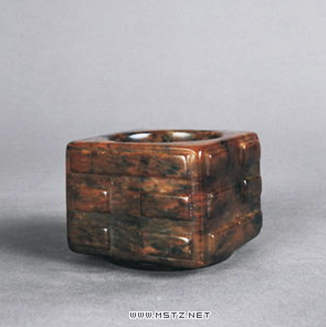 拍賣公司:北京中拍國際 日期:2006-05-21 說明:此器造型古拙,仿良渚文化玉琮造型,四面分別浮雕八卦卦象。石料質地圓潤,黃中有黑紋,F在收藏市場上田黃難得,大件更為難得,此擺件的價格自然不必多言。