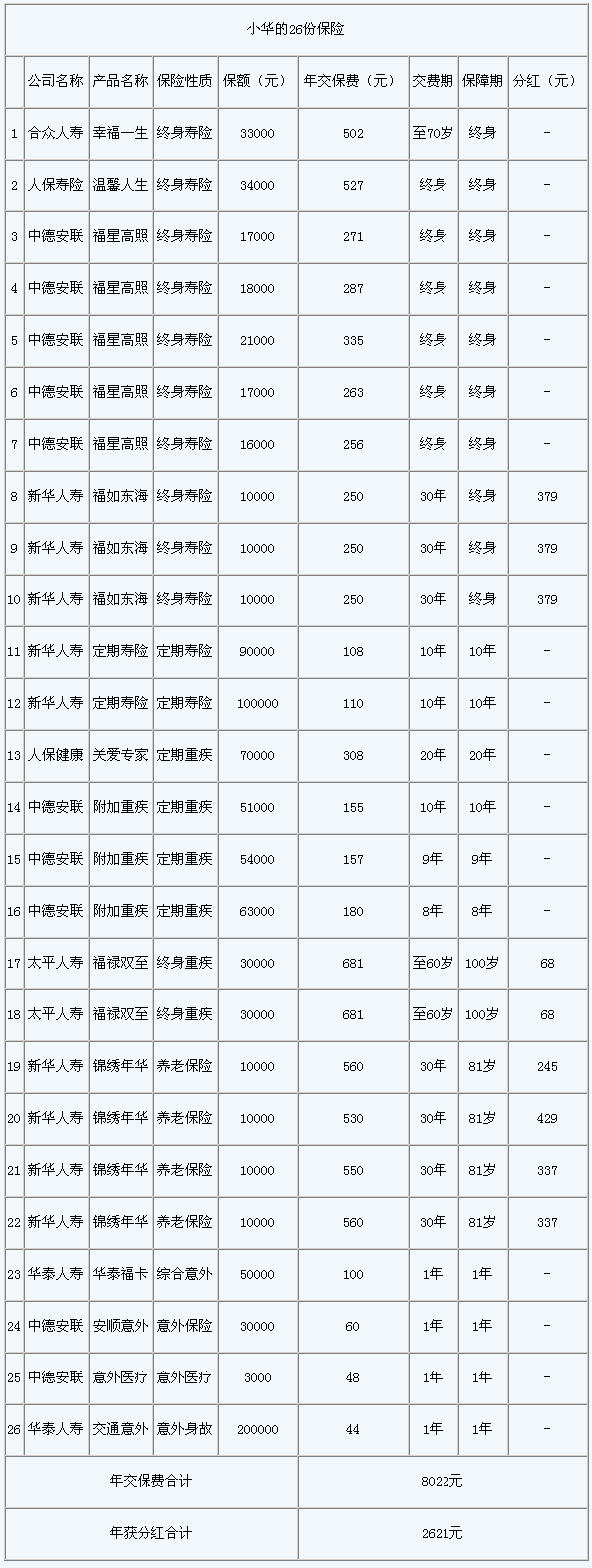小華的20份保險