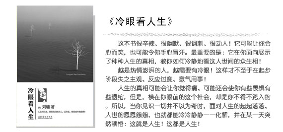 劉墉先生說這本書是比較辛辣的,但我覺得還好,讀過之后會有一種會心一笑的感覺。有些故事雖然經過夸大處理,但其實也好像就在身邊發生過一樣。。。