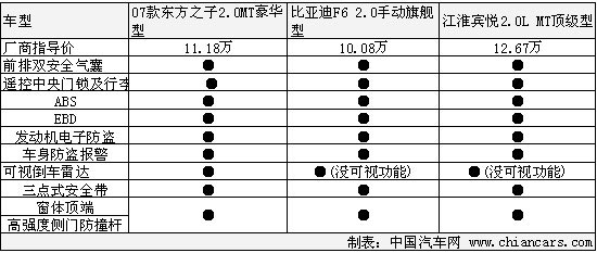 對技術含量不是要求很高的配備上,自主品牌的車型一般都做的很到位。隨著汽車本身的安全性也越來越受到消費者的重視,可以看出ABS+EBD和前排安全氣囊均成為了這三款車型的標準配置。也許是對成本的考慮,前排側面安全氣囊并沒有在這三款車上安裝。對于有些車主對倒車的恐懼和對車主提供有效的幫助,三款車型都安裝了智能型倒車雷達。不過,只有東方之在其身上裝上了可視性的雷達。