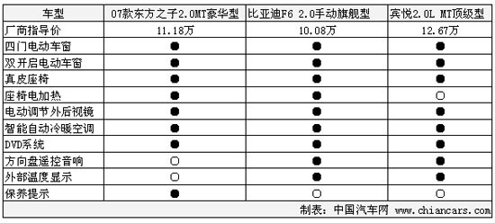 在舒適性配置方面,三款車大致相當,賓悅因為缺少座椅電加熱,失分較多(真皮座椅對電加熱還是不可缺少的,畢竟北方的冬天還是很冷的)。配置相當的基礎上,是否被消費者所選擇就要看誰的價格更占優勢了。