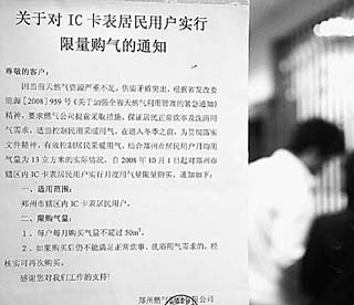 | 鄭州市一燃氣IC卡充值點貼出限購告示。丁潔