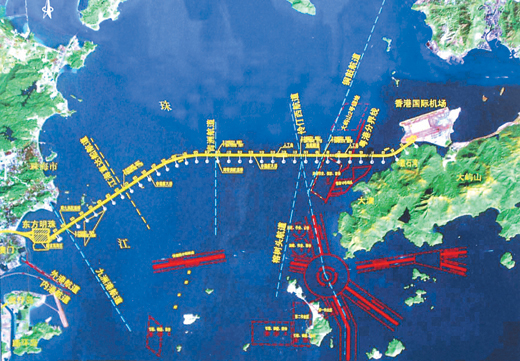 資料照片:粵港澳大橋專家推薦線位方案總體走向圖。李亞舟攝(人民圖片網供圖) |
