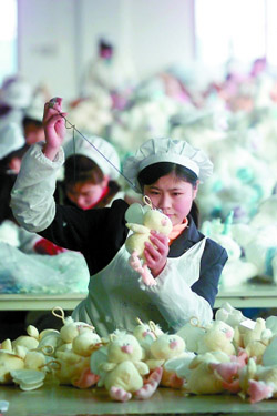 | 廣東的玩具生產企業正面臨出口下滑等困境。資料圖 | 廣東是全球知名的玩具生產基地、出口基地,占據中國甚至全球半壁江山。廣東生產的玩具占中國玩具總產值的70%以上,占全球銷量的五成。但近年來,這個紅火的行業陷入生存危機。 家電業也是廣東的支柱產業。廣東是中國乃至全球最大的家電生產基地,電飯鍋、電風扇等小家電產量占據全國90%的份額,微波爐、空調產量則占全國約50%的份額。有關數據顯示,2008年7月以來,家電業的訂單銳減。實力較差的企業7月份就有所體現,訂單下降了30%;實力較強的企業第三季度也開始受到影響。