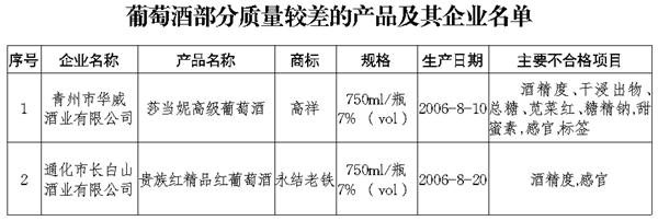 葡萄酒行業抽查中發現的主要問題有:感官品質不合格;酒精度不合格,部分產品酒精度低于規定值11.0至24.0(vol)的要求;超范圍使用甜味劑和合成色素。