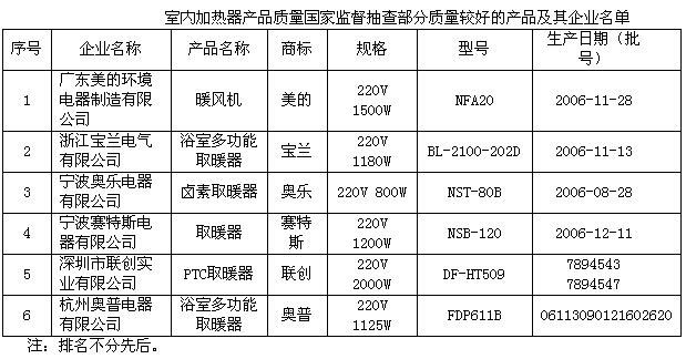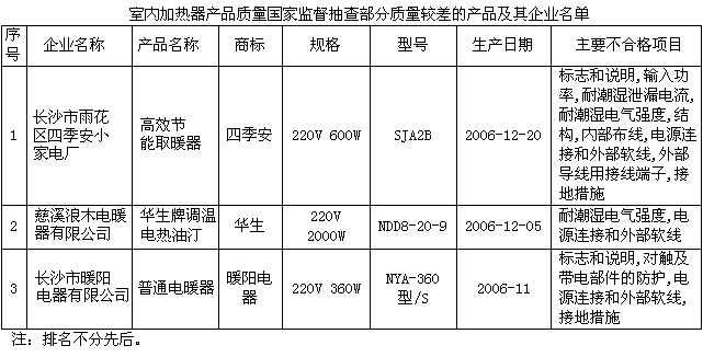 為了維護廣大消費者的合法權益,進一步規范室內加熱器行業的健康發展,國家質檢總局組織對室內加熱器產品質量進行了國家監督抽查,共抽查了浙江、廣東、湖南、江蘇、安徽、上海、山東等7個省市40家企業生產的40種產品,產品抽樣合格率為85%。