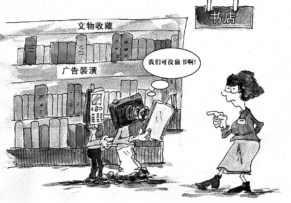 書價昂貴,一些囊中羞澀的讀者計上心來:拿出隨身攜帶的數碼照相機或帶有拍照功能的手機,將書中精華部分拍攝下來。面對“拍書”一族,書店經營者既擔心又無奈。