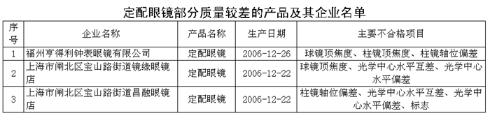 定配眼鏡行業中的主要問題有,國家強制性標準規定,900度以內的球鏡頂焦度允差為12度。抽查中有少數產品頂焦度不合格,其中有一種產品球鏡頂焦度偏差達到52度,超過了國家標準規定的要求。另外,國家強制性標準還規定,光學中心水平距離偏差最小為±2.0毫米;柱鏡軸位偏差最小為±2度。光學中心水平距離是關系到不同瞳距的配戴者能否選用到合適自己的眼鏡。柱鏡軸位是關系到不同散光軸位的配戴者能否得到正確矯正。抽查中有少數產品光學中心水平距離偏差和柱鏡軸位偏差超過國家標準規定的要求,會造成配戴者視力疲勞