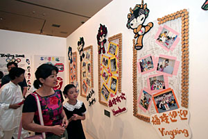8月5日,觀眾在參觀福娃展品。 當日,“收藏與奧運同行”——奧林匹克體育收藏品展在首都博物館舉行,展覽時間為8月5日至8月20日。本次展覽分“奧林匹克記憶”“中國的奧運之旅”“奧運連著你和我”三部分。新華社發(郝飛