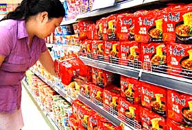 | 顧客在超市內選購方便面。本報記者 陳飛