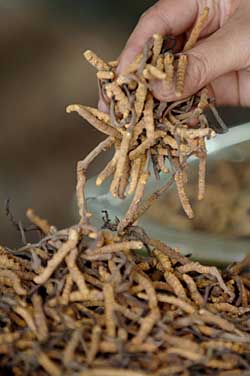 被人們瘋狂追逐的冬蟲夏草,實際是一種真菌寄生于一種名為“蟲草蝙蝠蛾”的幼蟲體內,這種被真菌感染的幼蟲冬季潛伏在土中,到了春夏交季時,真菌從蟲體頂部長出地面,發育成草狀,因此被人們命名為“冬蟲夏草”。冬蟲夏草為我國獨有,僅分布于我國青藏高原海拔3500米至5000米之間的高山草甸和高山灌叢帶。 針對人們對蟲草近乎“迷信”的消費心理,專家認為,蟲草并非“神藥”,消費者應理性對待。據張曉峰介紹,蟲草雖然十分珍貴獨特,但是它并不能包治百病。目前看來,蟲草的主要功效在于潤肺、止咳、化痰和提高人體免疫力。 張曉峰說,蟲草以入肺、入脾為主,所以主要用來治療肺結核或肺虛的病人。清代的藥典《本草從新》中記載,蟲草具有“甘平保肺、益腎止血,化痰治勞嗽”的作用,稍后的《本草綱目拾遺》對其功效的記載也大致相同。近來研究表明,蟲草也具有提高免疫力的功效,對癌癥癥狀能夠起到一定的緩解作用。蟲草本身并沒有“壯陽”的獨特功效。從中國醫學傳統的“整體”觀念看來,身體各臟器都是相關聯的,如果整體體質得到增強,性欲自然會提高。而增強體質可以通過多種手段,如加強鍛煉等,并不一定非要選用蟲草?傊,有病“對癥下藥”才是最科學的,而不要迷信所謂的“神藥”。 還有醫學專家指出,蟲草雖然有增強身體免疫力的作用,但是其發揮作用的機理十分復雜。據現代化學分析,蟲草的成分除脂肪、精蛋白、精纖維、碳水化合物以外,還含有蟲草酸、蟲草素和維生素B12等多種成分,要其發揮作用必須同時需要一定的劑量。因此,如果想通過服用一兩次蟲草就讓身體好起來,是不可能的。 |