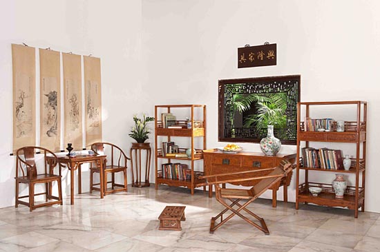 隨著近年來在消費者中興起的“古典家具熱”,位于珠江三角洲西南部我國著名僑鄉臺山市的大江鎮正逐漸形成具有國際一流水平的古典家具產業群。其中,伍氏興隆公司生產的明式古典家具不僅在國內具有一定的影響力,而且還遠銷到美國、新加坡等國家。圖為大江鎮生產的明式古典家具。