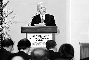 本報傳真圖 | 在亞洲金融危機爆發十周年之際,日本及東南亞各國央行行長昨天齊聚東京,共同探討大量國際資本流入對地區貨幣政策和金融穩定帶來的巨大沖擊。但與會的央行行長們認為,重現危機的可能性很小。