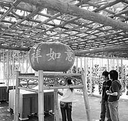 都市菜園籌建組負責人陳林兵指著棚下長出的一對對黃白兩種顏色的南瓜,風趣地介紹說:“我們管它們叫‘金童’和‘玉女’,而那個,像不像香爐?”可不是,不經指點,這里的不少奇瓜異蔬,真要從眼皮底下溜過!斑@些形態奇異的蔬果,味道怎么樣?”我們禁不住好奇地問道!斑@間溫室里,種有200多種蔬果,這些品種及栽培技術,是從國外引進的,比較符合這里土地沙質、鹽堿特性,種植出來的蔬菜綠色、環保、高產,味道也很不錯!标惲直卮鹫f。