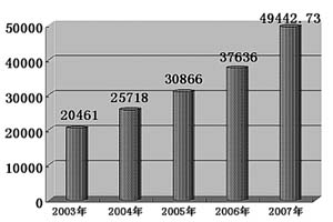 2007年,全國稅收收入突破4.9萬億元,全年財政收入將超過5.1萬億元,均比上年增長三成多,明顯高于GDP增幅——