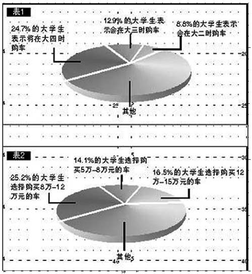 調查顯示, 25.2% 的大學生選擇購買 8萬至12 萬元的車, 16.5% 的大學生選擇購買 12萬至15