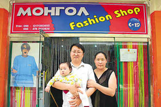 “東西一條街,18根電線桿;抽上一根煙,走路轉一圈!边@是當地人對二連浩特早年的描述。 1992年二連浩特成為沿邊開放城市之后,各地的商人懷著夢想奔赴二連浩特。到今天,二連浩特已經成為一個擁有10萬人口的邊境城市。而開放之初,二連浩特只是一個有8000人口的邊陲小鎮,被稱為“袖珍邊城”。 邊境貿易使這里人氣大漲,在二連浩特謀求生計的除來自內蒙古其他旗縣的人之外,還有來自廣西、福建、浙江等地的商人。由于二連浩特缺乏農牧業和工業,絕大多數人都選擇了經商。 二連浩特向北9公里即是蒙古國扎門烏德市,這里已成為中蒙邊境上最大的陸路口岸和惟一的鐵路口岸。每天,有數以千計的來自蒙古國、俄羅斯的大商小販前來選購貨物。 在溫州商城的C區,有一家批零兼營的休閑服裝店,主人是來自蒙古國烏蘭巴托的孟根巴格那。不知不覺間,他已在二連浩特度過了6年時光。