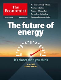 替代能源聽上去像是托詞。風車和太陽能電池似乎不可能產生足夠的電力來驅動一個繁忙而又自我本位的世界。同時,電動汽車也看起來有些滑稽,不像一部瑪莎拉蒂倒更像一輛送奶車。但是,替代方案的提倡者卻是認真的。至于原油替代品,價格似乎突然不成問題了。未來驅動汽車的生物燃料或者電池會比如今的油價還低。在幾乎所有可預見的將來,電價將低于汽油價,未來的電車插上插座就能充電,就像如今的汽車在加油站加油一樣容易。風能正在替代價格也在上漲的天然氣,太陽能則稍微落后幾年,但價格都將非常低。