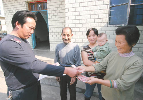 資料圖片:10月14日上午,安徽省銅陵縣順安鎮榮光村,種植大戶胡忠慶上門向農民兌付土地流轉合同租金。