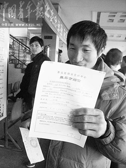 在火車上,稚氣未脫的他碰到了一個“朋友”——鄰座的旅客。兩人憑著一張地圖來到了杭州市蕭山區勞動力市場找工作。在市場轉了一圈兒看沒什么希望后,就與一面之交的“朋友”坐摩的去蕭山各個工業園區碰運氣,希望找到東家。結果奔波一天,他今天又回到了勞動力市場繼續找工作。