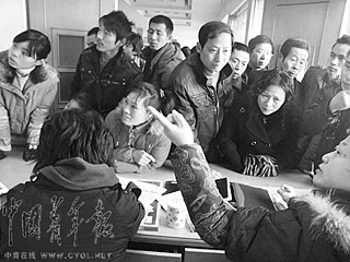 杭州市蕭山區勞動力市場擠滿了找工作的返城農民工。李劍平