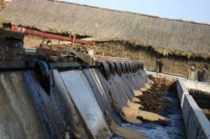 在沅江市金太陽紙業公司,記者眼前是破爛的廠房,一些職工正在從水路運送蘆葦。公司負責人薛永祥介紹,這個企業以前是部隊所屬,2002年改制后他花800萬元買下來,現有280多個農民工,每年交納3萬元的排污費給沅江市環保局。