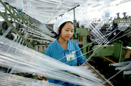 11月29日,工人在福建潯興拉鏈科技股份有限公司生產車間工作。 近年來,福建省晉江市充分發揮沿海區域優勢,大力發展民營經濟。晉江市現有一般納稅人資格企業11953家,個體工商戶12936家,形成了以紡織服裝、制鞋、陶瓷石材、食品、輕工玩具等五大傳統產業和車輛機械、精細化工、生物制藥、紙制品、新型材料業等五大新興產業,2007年前三個季度,全市完成生產總值413.52億元,同比增長15.5%,財政總收入44.69億元,同比增長25.9%。新華社記者:張國俊