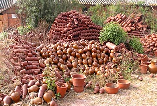 | 在云南省建水縣工藝美術陶廠的廠區里,一些制作好的紫陶器具隨意堆放著。本報記者 李倩