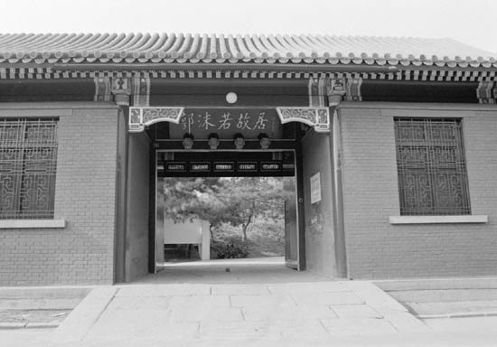 郭沫若(1892-1978)曾任中國科學院院長,是中國現代著名的文學家、詩人和思想家,創作了《女神》《武則天》等眾多優秀的文學作品。位于北京什剎海前海西岸的郭沫若紀念館前身是清代和珅的府邸花園,占地7000平方米。院中牡丹叢生、海棠高大,有土山和小月季園。紀念館現藏有郭沫若生前大量譯著手稿的原件及研究工作所用的書籍。郭沫若自1963年11月遷居于此,在這里度過了人生最后的15年。1982年8月郭沫若紀念館被公布為全國重點文物保護單位。