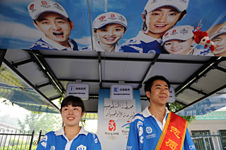 | 北京奧運會城市志愿者成為展示北京美好形象的靚麗名片。新華社記者 沙達提