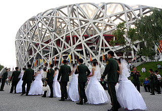 | 奧運后的國家體育場“鳥巢”成為許多大型活動的首選場地。圖為日前在這里舉辦的一場集體婚禮。新華社發(吳長青