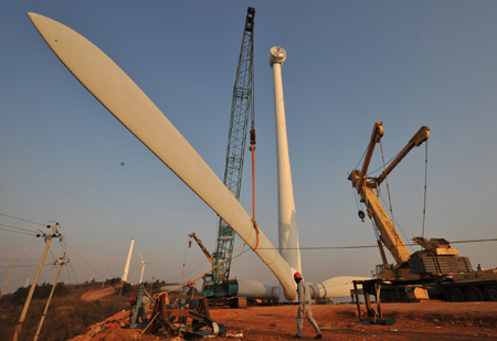 本次全國能源工作會特別提出,堅持以風電特許權方式建設大型風電場,推動風電設備國產化,逐步建立我國的風電產業體系。按照“融入大電網,建設大基地”的要求,力爭用10多年時間在甘肅、內蒙古、河北、江蘇等地形成幾個上千萬千瓦級的風電基地。目前,我國在建的風電裝機規模1000萬千瓦,國產裝機在新增風電機組中的市場占有率達55.4%。