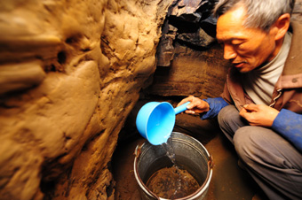 2月24日,黔西南布依族苗族自治州興仁縣豐巖村村民在山洞中取水。新華社記者 劉續