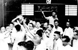 上海證券物品交易所內忙碌的交易情景。 | 提要:1920年7月1日,北京政府于1919年批準,又經過一年左右籌備期的上海證券物品交易所在上海正式開業。這是1872年中國以發行股票募集資金方式成立輪船招商局,開創中國股票發行和買賣以來,歷經約50年時間才在上海成立的第一家證券交易所。它和1918年北京成立的北京證券交易所以及1921年5月在上海開業的上海華商證券交易所一起,標志著近代中國的證券交易進入了證券交易所時代。 然而,就在1921年,濫設交易所彌漫上海灘,但是投機終無好下場,時近1921年年底,上海金融市場上銀根漸緊,一些交易所因錢莊和某些銀行抵制,告貸無門,只能走破產一條路了。經過這次風潮112家交易所存留下來的只有6家。