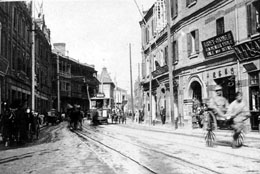 “孤島”時期上海租界內南京路一景。 | 提要:上海西商眾業公所(Shanghai