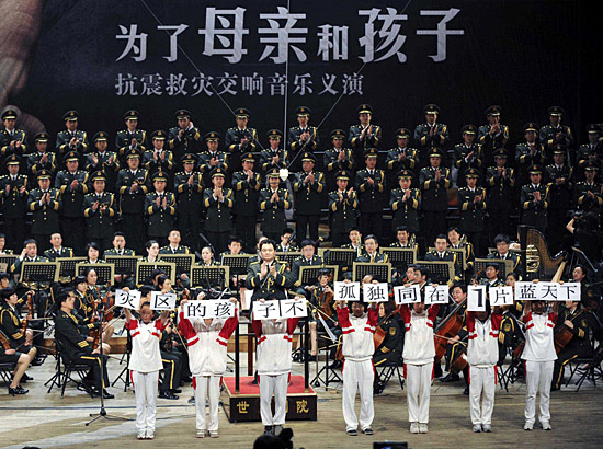 | 5月22日,“為了母親和孩子——抗震救災交響音樂義演”在北京世紀劇院舉行。義演呼吁社會各界伸出援手,幫助地震災區人民重建家園。新華社記者